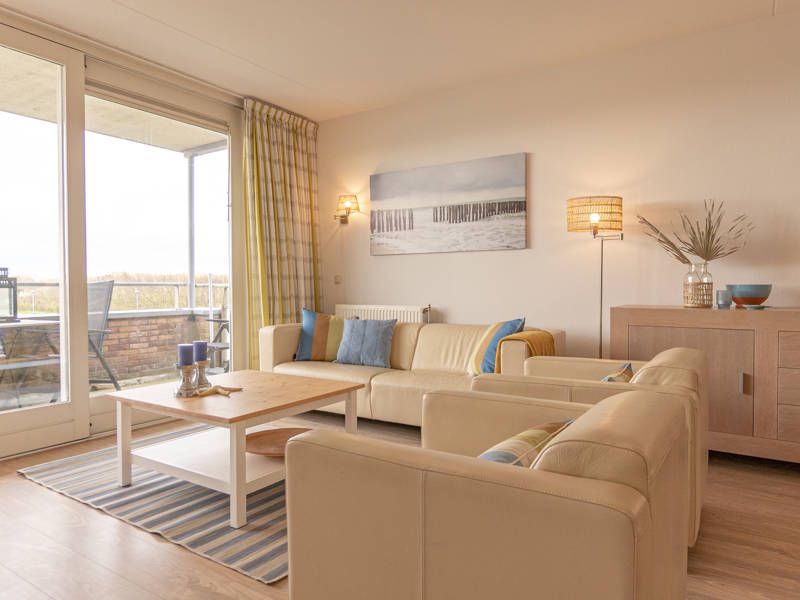Het appartement ligt op de eerste verdieping van het Duinerei-complex en is bereikbaar via trap of lift. De zonnige woonkamer met open keuken ligt op het zuiden en biedt toegang tot het balkon via een schuifpui. De inrichting is modern en comfortabel, met een gezellige zithoek, een eettafel en veel natuurlijk licht.