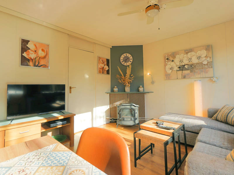 Dit sfeervolle huis is geschikt voor 4 personen en heeft twee slaapkamers: één met een tweepersoonsbed en één met twee eenpersoonsbedden. De woonkamer is licht en comfortabel ingericht en voorzien van een gezellige sfeerhaard, Smart TV met Chromecast en Netflix, én snelle wifi. De badkamer beschikt over een douche en toilet.