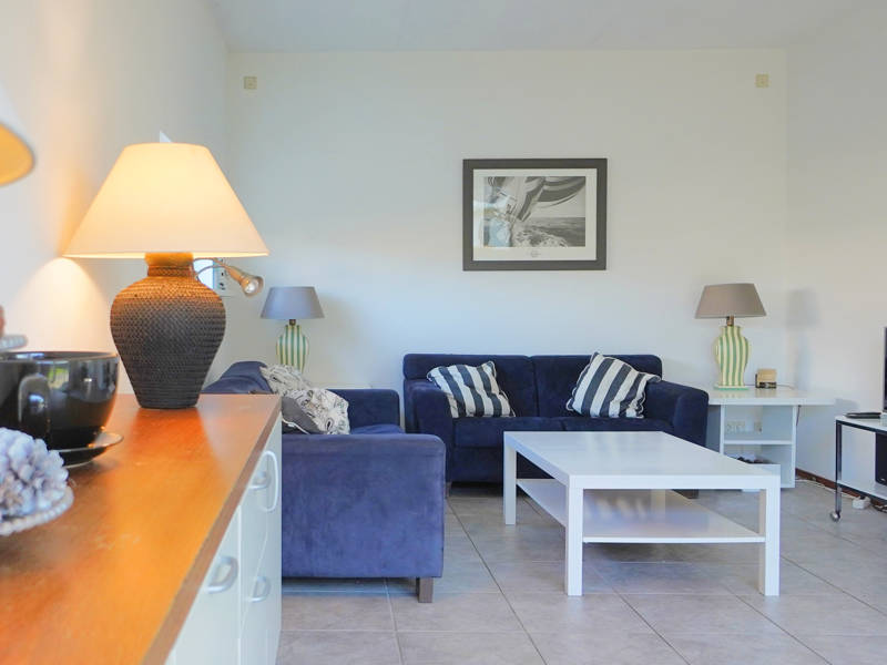 De woonkamer aan de zuidwestzijde is licht en comfortabel ingericht met een royale zithoek, tv en stereo-installatie. Via de schuifdeuren kom je op het zonnige terras met tuin – een fijne plek om buiten te eten of te relaxen. De open keuken is goed uitgerust met onder andere een vaatwasser, koelkast, vriezer en combimagnetron. Aan de eettafel is ruimte voor het hele gezelschap.