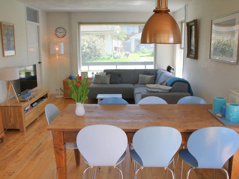 Deze geheel gerenoveerde vakantiewoning is smaakvol ingericht en voorzien van alle moderne gemakken. De lichte woonkamer heeft een comfortabele zithoek met bankstel en stoelen, en een aparte eettafel geschikt voor 6 personen. De open keuken beschikt over een koelkast met vriesvakje, vaatwasser en oven, ideaal voor gezellige maaltijden na een dag aan zee.