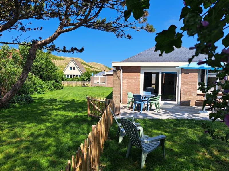 Deze geschakelde bungalow is ingericht voor vier personen en heeft een praktische indeling: een gezellige woonkamer met open keuken, twee slaapkamers en een nette badkamer met toilet. Via de schuifpui loop je zo het terras op, waar je geniet van de zon en het geluid van de zee op de achtergrond. Dankzij de open haard is het hier ook in het voor- en najaar heerlijk vertoeven.