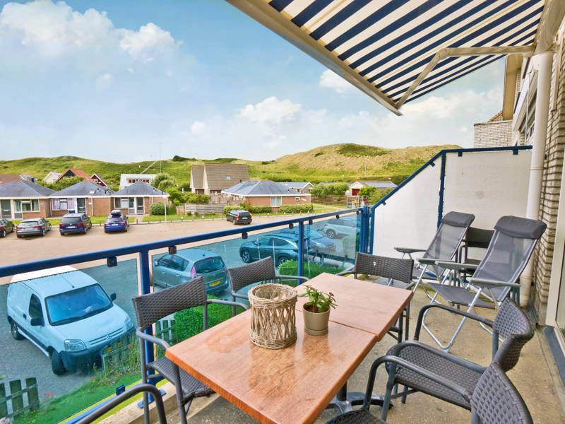 Ja, het appartement heeft een zonnig balkon op het zuidwesten met prachtig uitzicht op de duinen.
