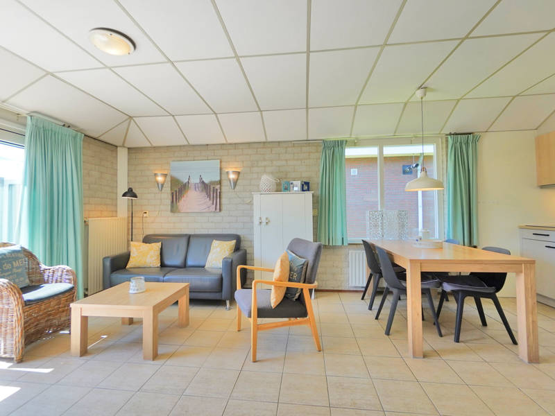 De bungalow is volledig gelijkvloers en ingericht voor vier personen. De woonkamer is licht en gezellig, met een schuifpui die toegang geeft tot het zonnige terras. Hier geniet je in alle rust van het buitenleven, zonder voorbijrijdend verkeer. De open keuken is praktisch ingericht, en er is een nette badkamer met toilet. Beide slaapkamers zijn voorzien van comfortabele boxspringbedden (twee eenpersoonsbedden per kamer).