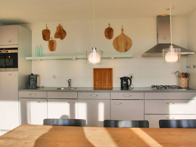 De woonkamer is licht en sfeervol ingericht met een comfortabele zithoek en eettafel. De open keuken sluit hier mooi op aan en is uitgerust met o.a. een vaatwasser, koelkast met vriesvakje, koffiezetapparaat en waterkoker. Vanuit de woonkamer stap je zo het zuidelijk gelegen terras op – volledig omheind, dus ook fijn voor jonge kinderen.